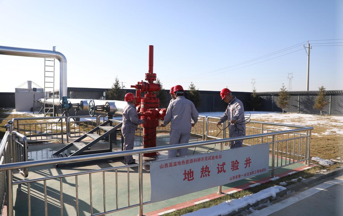 2021年1月,山西高溫地?zé)豳Y源科研示范試驗(yàn)電站的兩臺機(jī)組發(fā)電成功。試驗(yàn)電站一期占地約50畝,設(shè)計(jì)有勘查井場區(qū)、發(fā)電機(jī)組場區(qū)、水處理區(qū)等。