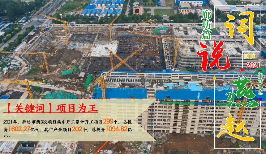 2021年,廊坊市以項目建設擴大有效投資,牢固樹立“項目為王”理念,前3次項目集中開工累計開工項目299個,總投資1602.27億元,其中產(chǎn)業(yè)項目202個,總投資1094.82億元。