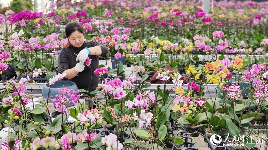基地員工忙著對蝴蝶蘭進行組盆。丁華明攝人民網(wǎng)宿遷1月13日電 (黃啟源)臨近春節(jié),江蘇沭陽縣耿圩鎮(zhèn)的蝴蝶蘭基地里百花爭妍,恰似彩蝶起舞。作為當(dāng)?shù)靥m花產(chǎn)業(yè)化示范園區(qū),這里培植有60余個蘭花品種,目前年實現(xiàn)產(chǎn)值過億元?;啬昀塾嬘霉?00余人,其中相當(dāng)一部分是當(dāng)?shù)氐褪杖霊?,可為每人每年增加工資性收入4萬余元。