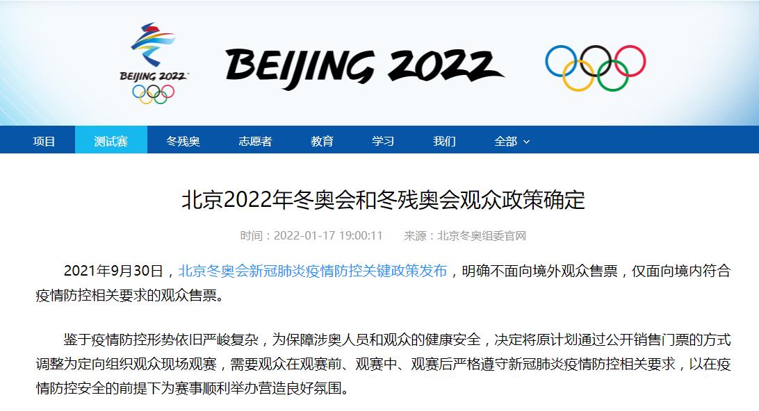 北京2022年冬奧會(huì)和冬殘奧會(huì)觀(guān)眾政策確定