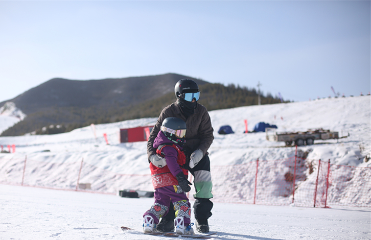 金彬彬和女兒一起練習(xí)滑雪。受訪者供圖