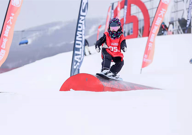 金彬彬想讓萱萱參加比賽鍛煉鍛煉。由于大部分滑雪賽事都不設(shè)幼兒組,年紀(jì)太小的萱萱每次報名都被退回?!皼]有幼兒組的比賽,我們就參加少年組,有時候干脆直接報名成年組的比賽,就當(dāng)去積累經(jīng)驗、以賽代練。”金彬彬說。