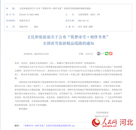 人民網(wǎng)石家莊1月19日電 (商帆)近日,文化和旅游部發(fā)布了“筑夢(mèng)冰雪·相伴冬奧”全國(guó)冰雪旅游精品線路,10條線路涵蓋北京、河北、黑龍江、吉林、遼寧、新疆、內(nèi)蒙古7個(gè)北方冰雪旅游大省(區(qū)、市),以及甘肅、四川、湖北、重慶等近幾年冰雪旅游加快發(fā)展的地區(qū)。河北省“冰雪京張·冬奧之城”精品線路和“長(zhǎng)城內(nèi)外·冰雪絲帶”精品線路入選。