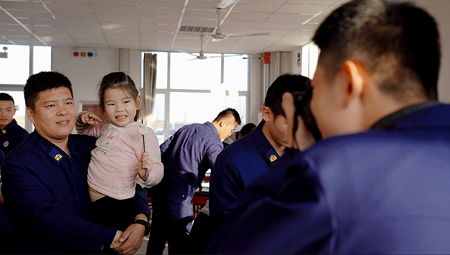 室外寒氣襲人,室內(nèi)溫暖四溢,其樂融融,消防救援人員及家屬在消防站貼窗花、掛燈籠……參觀中,孩子們稚嫩的聲音回蕩在消防站中,增添了一絲童趣;包水餃環(huán)節(jié),大家分工協(xié)作,你搟皮,我包餡,氣氛和諧,洋溢著“家”的味道,讓這個冬天情意滿滿。吃餃子、話家常,應(yīng)和著這溫暖的氛圍,大家圍坐在一起感受著濃濃的年味,昔日嚴(yán)肅的食堂充斥著歡聲笑語。在場一位消防救援人員的家屬表示:“孩子爸爸平時回家少,工作環(huán)境又比較危險,作為家屬我們能做的就是全力支持他們的工作,今天來隊參觀對他平時的工作也多了一分了解,以后我會更加支持他的!”