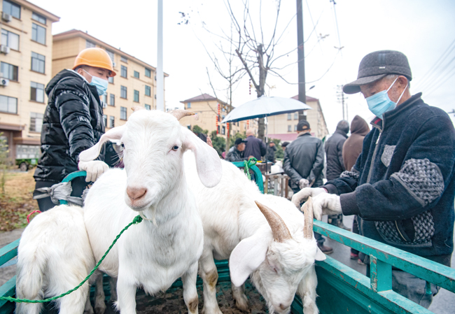 1月24日,金華市金義新區(qū)赤松鎮(zhèn)仙橋臘月第一個活羊集市開市,各地農(nóng)戶運來自家飼養(yǎng)的活羊上市交易。(時寬兵)