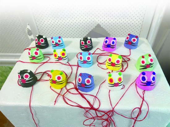 記者來(lái)到吳為民的工作室里,一提到“皮老虎”,吳為民滔滔不絕?!啊だ匣ⅰ怯媚嗯吣蟪煽蓯?ài)的小老虎的樣子,通過(guò)一只手握住它,另一只手滑動(dòng)它身上的紅線,就會(huì)發(fā)出各種動(dòng)物的叫聲。我做的這個(gè)‘皮老虎’,它能發(fā)出許多種動(dòng)物的叫聲。”吳為民一邊說(shuō)著一邊為記者演示,“隨著滑動(dòng)的頻率的變化,它能發(fā)出各種惟妙惟肖的聲音,有貓叫、青蛙的叫聲、老母雞的叫聲等等?!?/p>