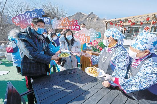 登上八達(dá)嶺向北眺望,海陀山頂“雪飛燕”賽道潔白,長(zhǎng)城內(nèi)外,景色壯美。昨天是大年初五,由2022北京新聞中心主辦的“雙奧之城新氣象—2022中外媒體北京行”來(lái)到冬奧會(huì)舉辦地之一的延慶區(qū),32家中外媒體的63名媒體記者看冬奧直播、賞民俗、登長(zhǎng)城、入民宿、吃餃子,他們贊嘆“長(zhǎng)城腳下看冬奧,滿滿中國(guó)味!”