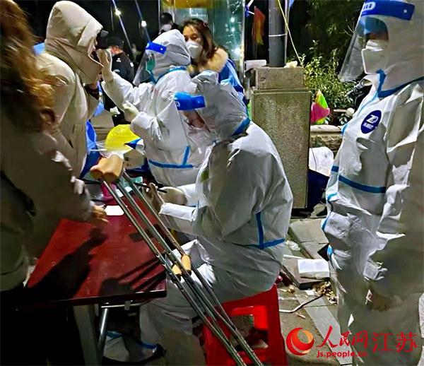 從16日晚上8點到次日凌晨,白志余徹夜未眠,這導(dǎo)致他腿部骨折處又腫了起來,但他全然不顧。記者獲悉,白志余因一次意外導(dǎo)致腿部骨折。原本在家休養(yǎng)的他在得知當(dāng)?shù)亻_展核酸檢測后,第一時間報名成為志愿者。