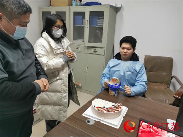 不過,讓楊一波難忘的是,他在疫情防控一線過了一個有意義的生日。2月16日,是楊一波26歲生日,但他不能和自己的家人一起。就在他忙得不可開交時,他的女朋友到采樣點給他送來了生日蛋糕。在大家的祝福聲中,他一口吃著泡面,一口吃著蛋糕。緊張的疫情防控形勢讓他來不及感動,匆匆又奔赴防控一線。