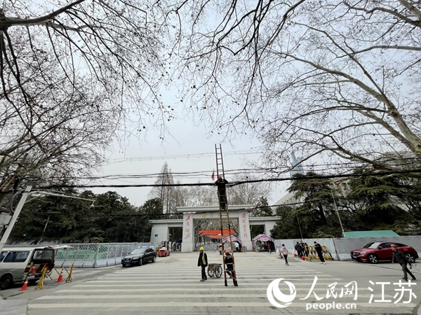 南京大學(xué)門前的漢口路桿線下地工程正在建設(shè)中。人民網(wǎng) 馬曉波攝