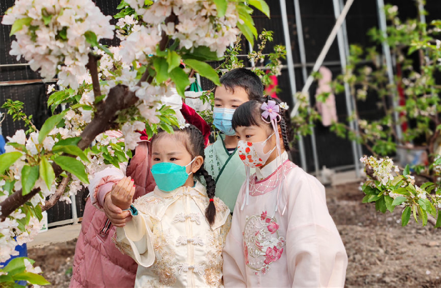 走進茶淀街道孟家瞿卩村種植戶于長晶的大棚,仿佛置身于花海之中。大棚外春寒料峭,大棚內(nèi)溫度適宜、花開正艷。櫻桃花盛開的美景吸引了不少游客前來打卡拍照,有的小游客為了拍出好看的照片,還特意穿來漢服來和櫻桃花合影拍照。農(nóng)戶搶抓農(nóng)時,辛勤勞作,確保今年的櫻桃豐產(chǎn)豐收?!皺烟夜芾硇枰饲诳?,不能偷懶。”于長晶一邊忙著給櫻桃樹修剪枝條一邊說道。這幾天,她和家人每天都很忙碌,盡管勞累,但心里卻很高興。于長晶說:“我們今年借助科學(xué)管理,有的大棚里的櫻桃已經(jīng)結(jié)出果實。大概到3月下旬,大片櫻桃都成熟了,到時候游客就可以來采摘了。”