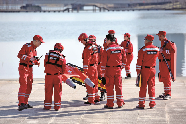 2月24日下午,在嘉興秀湖畔,怡恩公益救援隊(duì)組織隊(duì)員開(kāi)展應(yīng)急救援訓(xùn)練,以此提高隊(duì)員們的應(yīng)急救援能力。(馮玉坤)