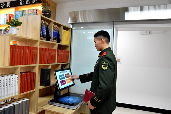 與此同時,支隊還在軍營各處建起班級圖書角,放置自動圖書借閱機,并依托強軍網搭建起智慧軍營閱讀平臺,讓官兵可以隨時根據自身的興趣愛好精選學習內容,瀏覽前沿知識,在整個軍營營造“書香滿軍營、官兵研經典”的濃厚氛圍。