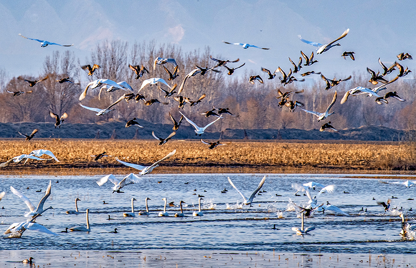 - 山西萬(wàn)榮:黃河濕地天鵝曼舞