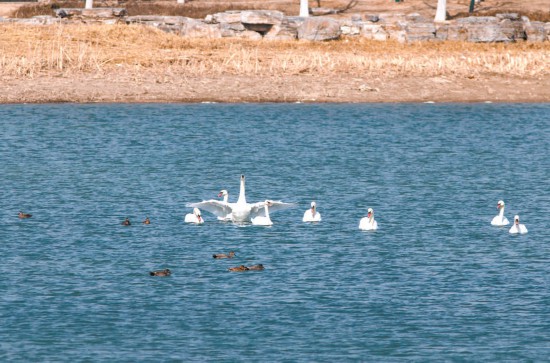 候鳥飛躍山川湖泊,帶來春的訊息。城南最大濕地南海子如今已水鳥翔集,北京地區(qū)有分布的三種野生天鵝上周末同時(shí)出現(xiàn),其中,疣鼻天鵝為我國數(shù)量最少的野生天鵝,全國僅存約3000只。