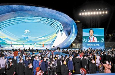 3月6日晚,北京冬殘奧會(huì)張家口賽區(qū)首場(chǎng)獎(jiǎng)牌頒發(fā)儀式在張家口頒獎(jiǎng)廣場(chǎng)舉行。 河北日?qǐng)?bào)記者 賈 恒攝