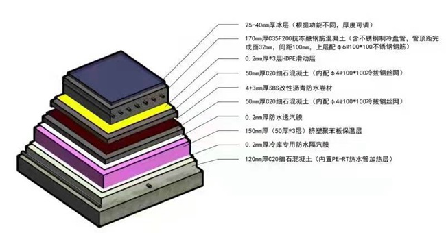 混凝土冰板層這道工序尤為重要,施工也最為艱苦。對李燕敏來說,冰板構(gòu)造施工就如同制作“千層糕”:從下向上鋪設(shè)加熱層、防潮隔汽層、保溫層、隔離層、防水層、混凝土冰板層……55厘米厚的混凝土整整有9層,整個地面平整度要達(dá)到設(shè)計要求的精度,每個環(huán)節(jié)不容有絲毫閃失。