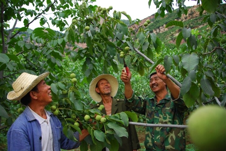 左權(quán)是“中國(guó)核桃之鄉(xiāng)”,核桃栽培歷史1000余年,栽培面積36萬(wàn)畝,其中結(jié)果面積20萬(wàn)畝;核桃株數(shù)合計(jì)580萬(wàn)株,其中結(jié)果樹(shù)360萬(wàn)株;核桃正常年份產(chǎn)量1500萬(wàn)公斤,產(chǎn)值3億元;核桃專業(yè)合作社200余個(gè),入會(huì)社員達(dá)到9000余戶;正常年份僅核桃一項(xiàng),全縣農(nóng)民人均收入2000余元……這一串?dāng)?shù)字表明,核桃當(dāng)之無(wú)愧是左權(quán)農(nóng)民穩(wěn)定增收的第一大傳統(tǒng)產(chǎn)業(yè)。