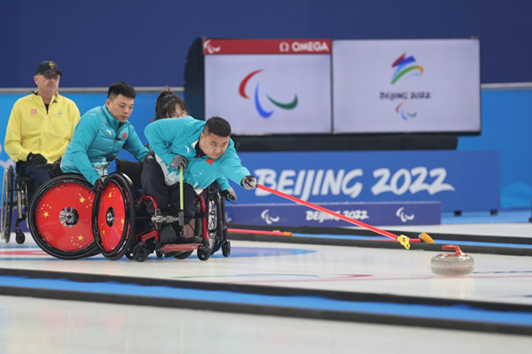 人民網(wǎng)哈爾濱3月12日電 (楊雪楠)3月12日,在北京國(guó)家游泳中心“冰立方”舉行的北京冬殘奧會(huì)輪椅冰壺決賽中,中國(guó)隊(duì)?wèi)?zhàn)勝瑞典隊(duì)獲得金牌,這是中國(guó)輪椅冰壺隊(duì)在平昌2018年冬殘奧會(huì)奪金后的成功衛(wèi)冕。在決賽中,中國(guó)輪椅冰壺隊(duì)隊(duì)長(zhǎng)、黑龍江運(yùn)動(dòng)員王海濤在關(guān)鍵時(shí)刻投出漂亮的“雙飛”,有力助力了中國(guó)隊(duì)最終奪金。