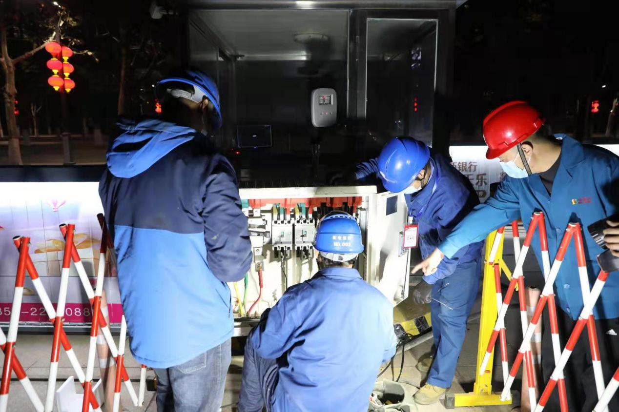 初春深夜依然寒意襲人,由于疫情影響,晉城大街小巷一片寂靜。文體宮外,供電人員卻正在緊張地工作,與時(shí)間賽跑。
