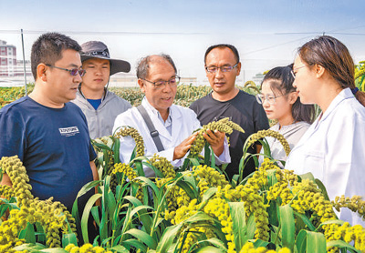 今年64歲的趙治海是河北省張家口市農(nóng)科院雜交谷子研究專家,帶領研究團隊培育出“張雜谷”,將我國北方干旱半干旱地區(qū)谷子畝產(chǎn)由300公斤提高到600公斤。“張雜谷”還改變了谷子只適宜年降水400毫米以上半干旱地區(qū)的傳統(tǒng),在年降水200毫米的干旱地區(qū)也能生長?!肮茸诱趄v系數(shù)遠低于高粱、玉米、小麥,‘張雜谷’更加節(jié)水耐旱?!壁w治海說。