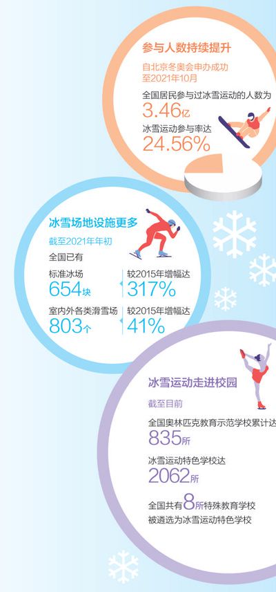 北京冬奧會(huì)和冬殘奧會(huì)的東風(fēng),播撒著冰雪運(yùn)動(dòng)的種子,在各地生根萌芽。自申冬奧成功至2021年10月,全國(guó)居民參與過冰雪運(yùn)動(dòng)的人數(shù)達(dá)到3.46億,冰雪運(yùn)動(dòng)參與率達(dá)24.56%,“帶動(dòng)3億人參與冰雪運(yùn)動(dòng)”愿景成為現(xiàn)實(shí)。國(guó)際奧委會(huì)主席巴赫表示,我們歡迎中國(guó)成為冰雪運(yùn)動(dòng)大國(guó)。