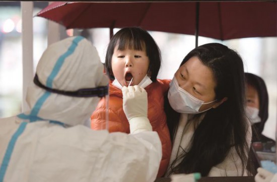 3月20日,在嘉興秀洲區(qū)新城街道核酸采樣點,市民們冒雨前來參加核酸檢測?,F(xiàn)場,有不少小朋友跟著家長參加檢測,面對和藹可親的醫(yī)護(hù)人員,小朋友們積極配合,一個個表現(xiàn)得特別勇敢。(馮玉坤)