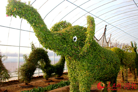 人民網(wǎng)石家莊3月20日電 (周博)早春三月,修枝剪葉正當時。大象、梅花鹿、長頸鹿……走近河北定州孟亮苗圃基地,原本雜亂的枝條通過村民們的巧手,變幻出不同的造型矗立大棚內(nèi),400余株苗木長勢喜人,好不熱鬧。