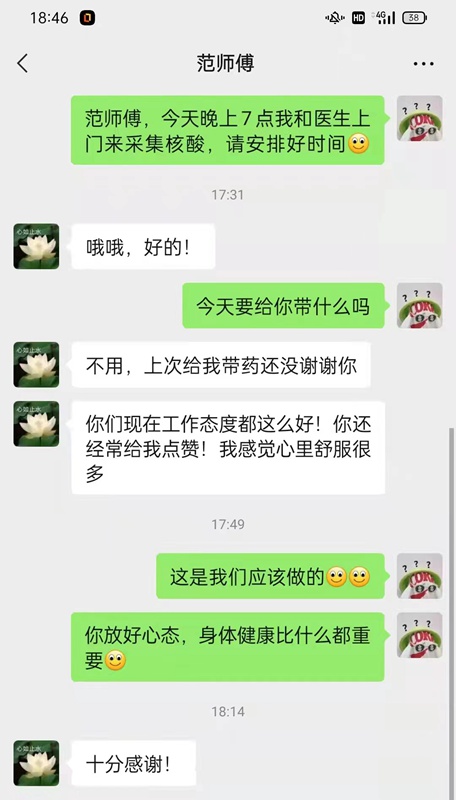 范先生在微信上向洪濤表達(dá)感謝。杭州市臨平區(qū)東湖街道結(jié)網(wǎng)社區(qū)供圖