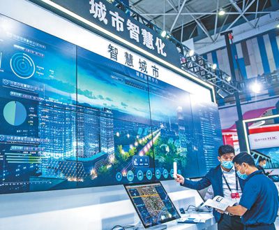 在貴州貴陽舉辦的中國國際大數據產業(yè)博覽會上,參會者了解智慧城市治理中心。