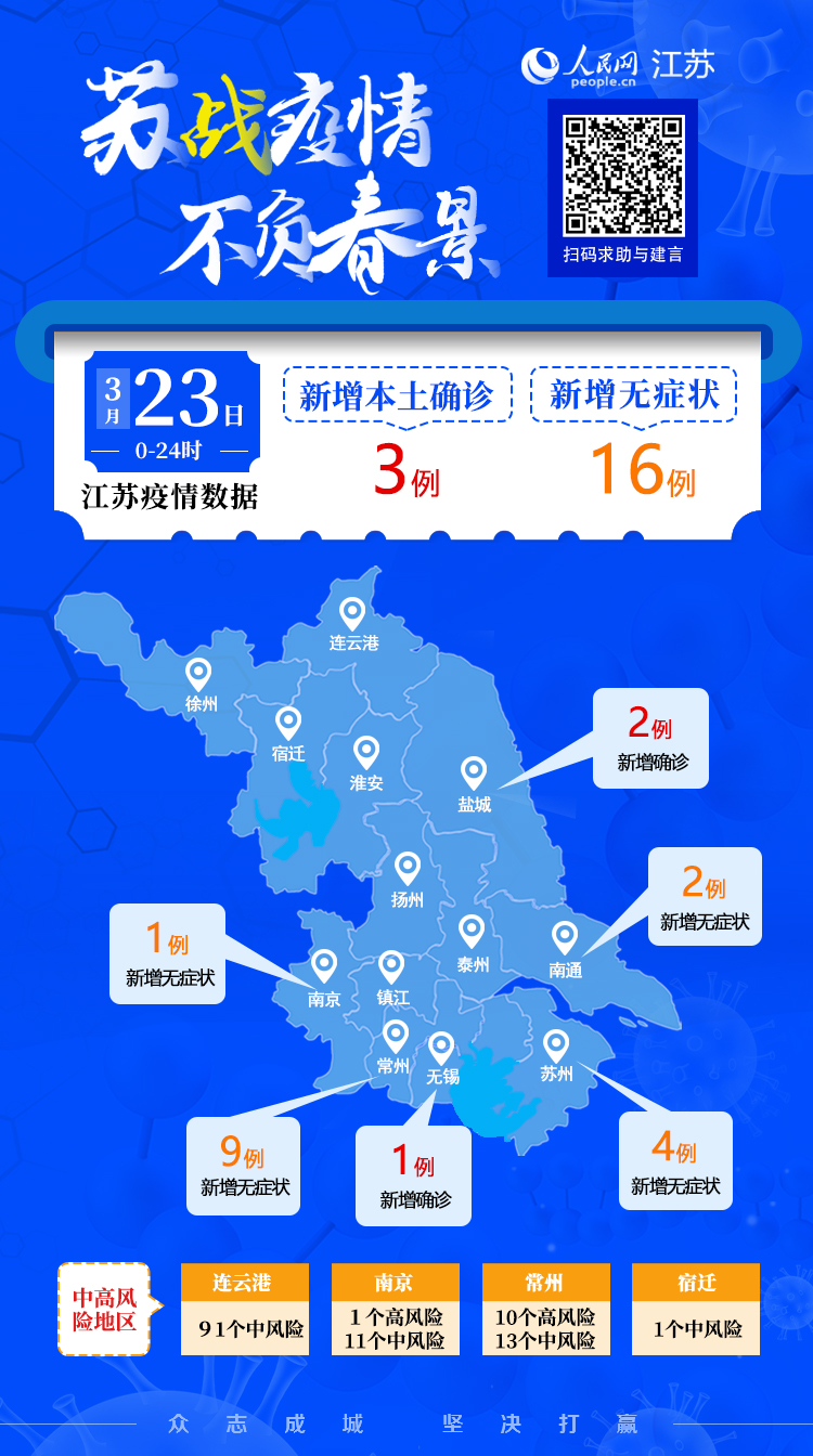 3月23日江蘇新增本土確診病例3例 本土無(wú)癥狀感染者16例