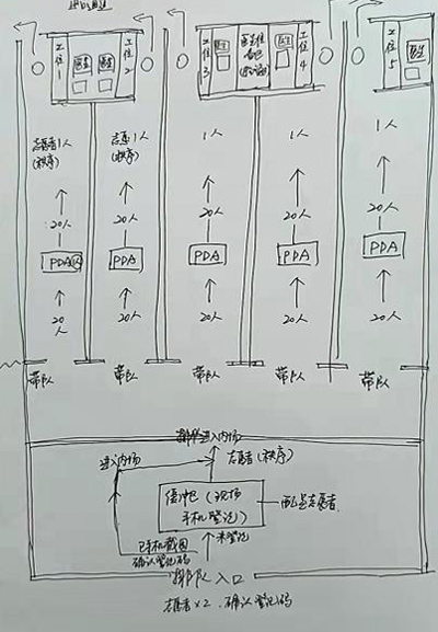 正如祁媛媛所說,靈感來源于實踐??恐B日來在檢測一線工作的體驗,祁媛媛不斷摸索,反復思考,根據(jù)1-6個工位的不同組合,手繪了6張檢測流程圖,上面清晰地標注著檢測的動線、每個環(huán)節(jié)以及對應的功能和注意事項,從而能夠直觀地指導居村提升檢測效率,讓檢測如“流水線”般高效順暢。