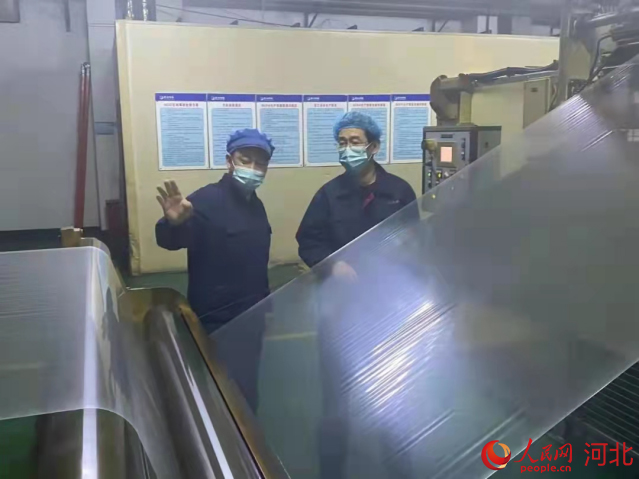 河北金達塑業(yè)有限公司復(fù)工工人正在檢驗產(chǎn)品。 栗兵攝