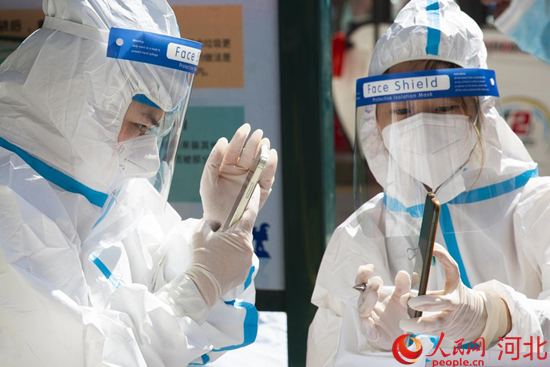 張振是滄州市人民醫(yī)院胃腸外科的護(hù)士。去年,他曾到藁城支援核酸采集工作。這一次,接到緊急任務(wù)通知后,有核酸采集經(jīng)驗(yàn)的他再次與同事奔赴核酸采集點(diǎn)?!扒皫滋煳覀冊诤游鞅苯稚鐓^(qū)采集核酸,每人每天大概要采600余人的樣本?!彪娫捓铮瑥堈竦穆曇袈晕⑸硢?。