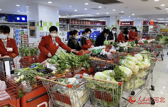 滄州千方百計保證市場供應(圖為近日當地超市工作人員分揀打包蔬菜)。 滄州市商務局供圖