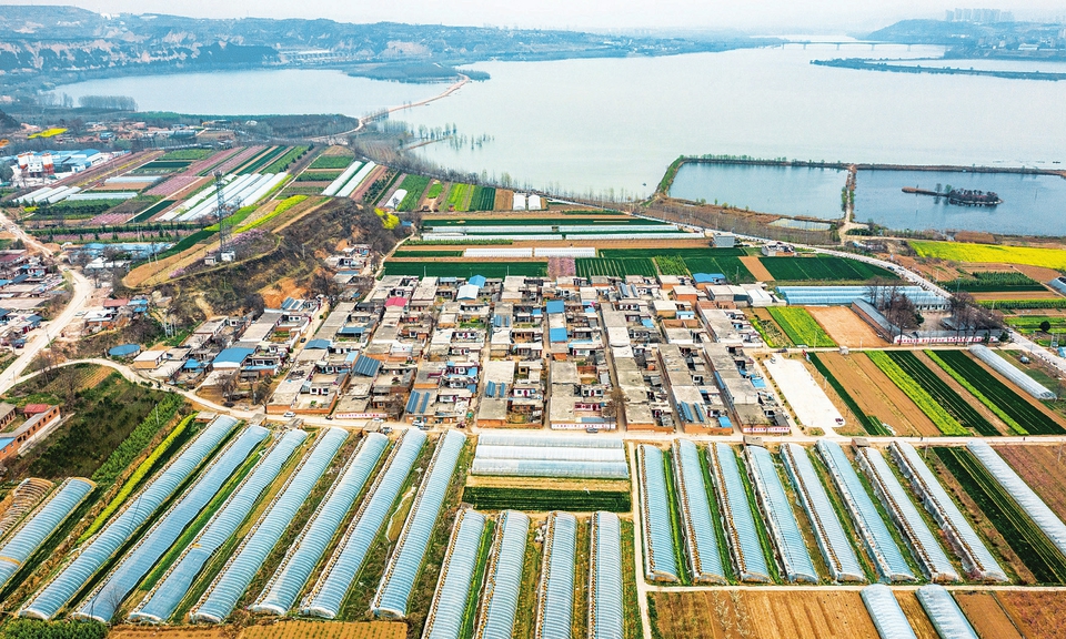 3月18日,春風(fēng)輕拂下的平陸縣張村鎮(zhèn)后地村,風(fēng)光旖旎。近年來,運(yùn)城市持續(xù)推進(jìn)鄉(xiāng)村振興戰(zhàn)略,農(nóng)村面貌如畫如詩(shī),整齊的民居、鮮艷的桃花、連片的大棚交相輝映,構(gòu)成一幅秀美的新農(nóng)村畫卷。(薛俊攝)