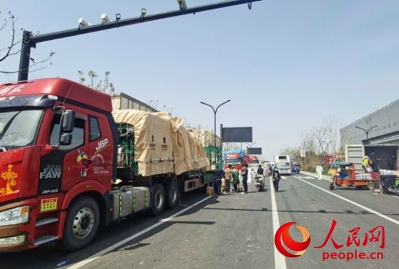 通農物流臨時交易區(qū)內,一輛輛卡車運來各類新鮮的蔬菜。人民網記者 王繼亮攝