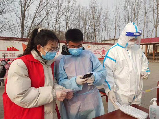 遷安市太平莊鎮(zhèn)蘇各莊營(yíng)村大學(xué)生志愿者掃碼登記。 商立超攝