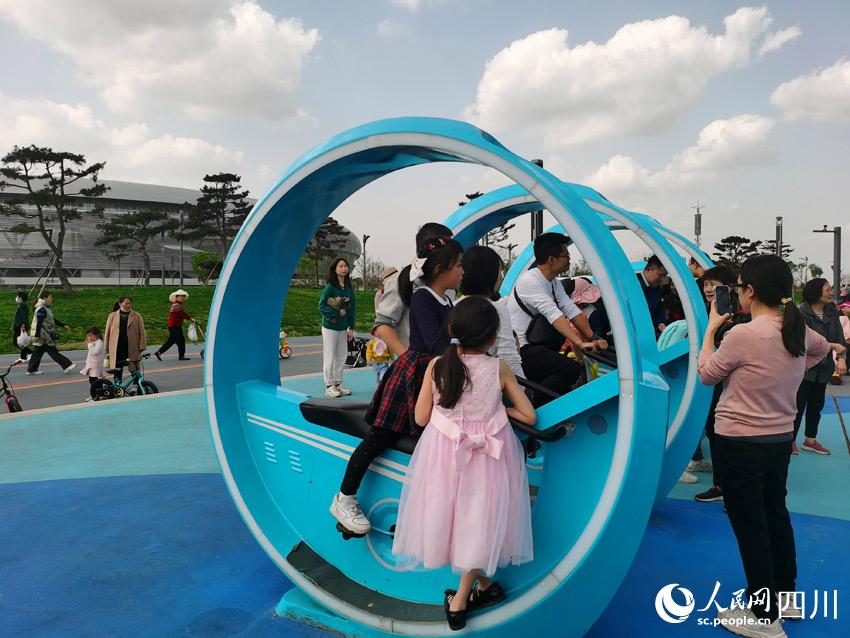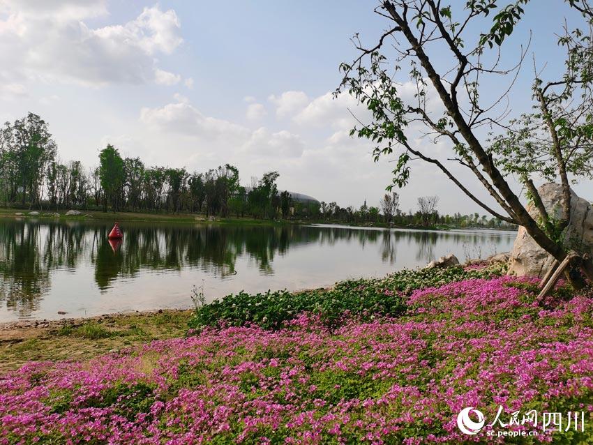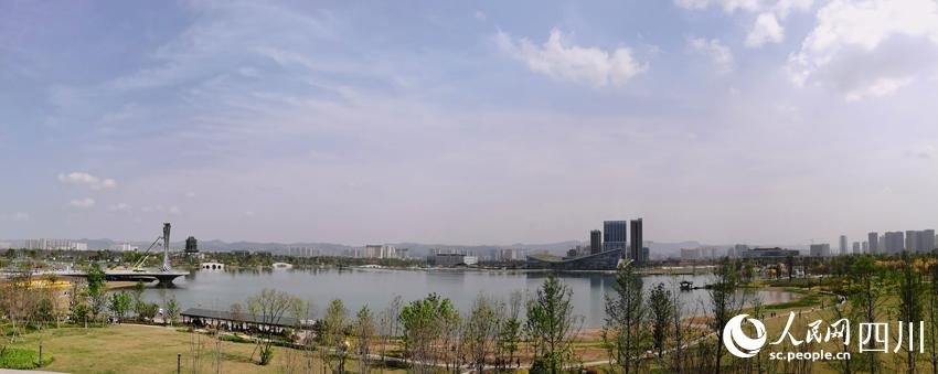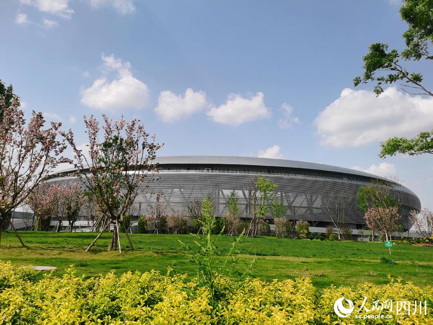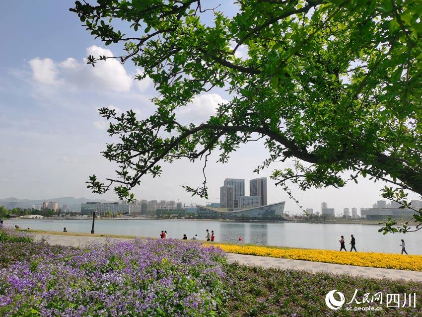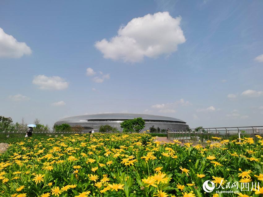 龍泉山脈綿亙遠(yuǎn)方,東安湖水蕩漾眼底,體育場館巍峨半空,花草樹木各展春姿。在湖光山色之間,有大量市民前來踏青賞春,順便欣賞著大運會場館和火炬塔的風(fēng)采。