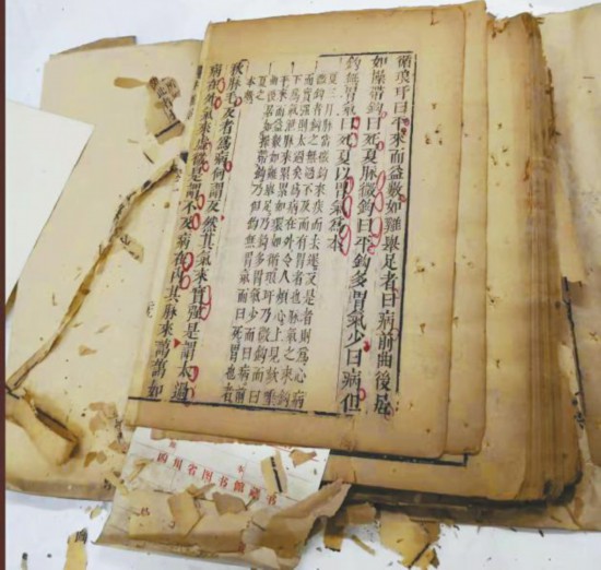參加杭州培訓(xùn)之前,時任四川省圖書館特藏部主任沙銘璞老先生還特別將一塊用棉布包裹的厚厚的書磚交給袁東玨,并叮囑要把這部書搶救出來?!爱?dāng)時,四川省圖書館的古籍修復(fù)已中斷了很多年,古籍修復(fù)工作面臨青黃不接的局面,沙老希望我回來后能把這項工作接起來。”