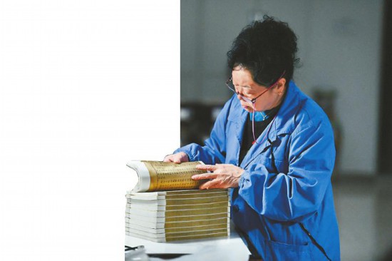 熟能生巧,修書破萬卷后,她和古籍建立了一種獨特的默契,“比如我現(xiàn)在做金鑲玉的鑲襯及折邊,200頁兩天就可以做完,書葉的厚薄、紙張潤度,靠著手摸就能感覺到。”