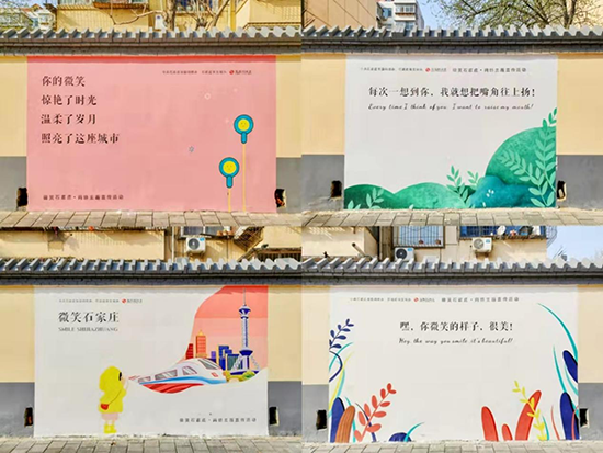 在此地的“微笑墻”主題壁畫,是由中共石家莊市委網(wǎng)信辦、石家莊市文明辦共同主辦的“微笑石家莊”網(wǎng)絡(luò)主題宣傳活動(dòng)的線下打卡地之一,繪畫匯集了各種石家莊的城市元素、溫暖的勵(lì)志話語,定格于城市街頭。