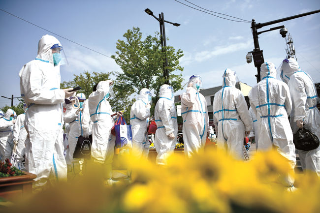 3月30日,嘉興經開區(qū)城南街道新月公寓的居民,在工作人員的引導下,有序登上疫情防控專用大巴,前往各醫(yī)學觀察隔離點。(王振宇)