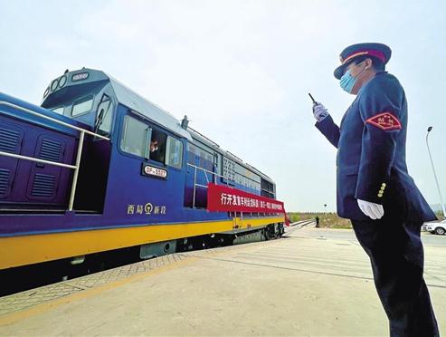 3月30日上午,寶雞東南亞國際班列發(fā)車儀式上,工作人員下達(dá)發(fā)車指令。本報記者 李宛嶸攝