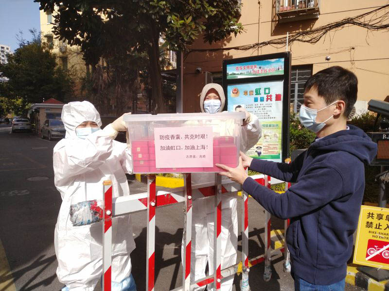 人民網(wǎng)上海3月31日電 (唐小麗、馬作鵬)“這些避疫香囊是我的一點心意。”3月30日下午,高晴將她自制的100多只避疫香囊,轉(zhuǎn)送給虹口區(qū)曲陽路街道赤峰二小區(qū)正在抗疫的志愿者們。