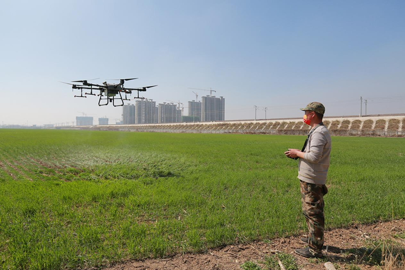 “2022年,我們合作社種植了3000畝小麥,為加強(qiáng)田間管護(hù),我們與農(nóng)時(shí)賽跑,用科技助力糧食豐產(chǎn)豐收。通過(guò)推廣使用植保無(wú)人機(jī)作業(yè),大大提高了田間管護(hù)效率。根據(jù)提前設(shè)定好的飛行速度、作業(yè)軌跡,植保無(wú)人機(jī)就會(huì)按設(shè)定程序開(kāi)展作業(yè)。當(dāng)前植保無(wú)人機(jī)一天作業(yè)面積能達(dá)到600畝?!必S田種植專(zhuān)業(yè)合作社負(fù)責(zé)人王少錁說(shuō)。