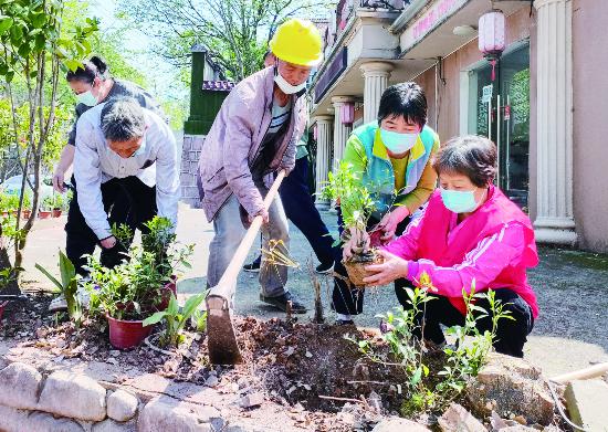 近日,金華市區(qū)城中街道楊思嶺社區(qū)企退人員、黨員志愿者開展“愛(ài)心植樹、綠色環(huán)保”實(shí)踐活動(dòng),在公共花壇泥土裸露的地方,補(bǔ)栽梔子花、風(fēng)尾花等花卉,美化社區(qū)環(huán)境。(時(shí)寬兵)