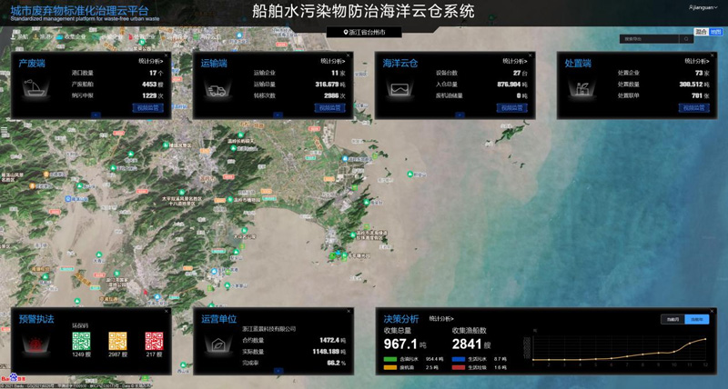 海洋云倉系統(tǒng)是在臺(tái)州中心漁港設(shè)立的船舶污染物集中預(yù)處理中心,可分類回收含油污染物、生活污水、廢鉛酸電池、生活垃圾等海域污染物。海洋云倉系統(tǒng)通過5G網(wǎng)絡(luò)接入云端,將收集的數(shù)據(jù)進(jìn)行實(shí)時(shí)回傳,同時(shí)部署VR相機(jī),利用5G大帶寬特性,監(jiān)控中心可實(shí)時(shí)掌握海洋云倉系統(tǒng)運(yùn)轉(zhuǎn)情況。漁民只要在“浙里辦”手機(jī)端發(fā)起污染物上交申請(qǐng),系統(tǒng)就會(huì)就近派單,通知專業(yè)船舶上門收集。海洋云倉在收集到一定量級(jí)后,會(huì)通知有專業(yè)資質(zhì)的運(yùn)輸車,把廢油運(yùn)輸?shù)接袑I(yè)處置能力的公司處置或者再生利用,減少后期運(yùn)輸和處置成本。