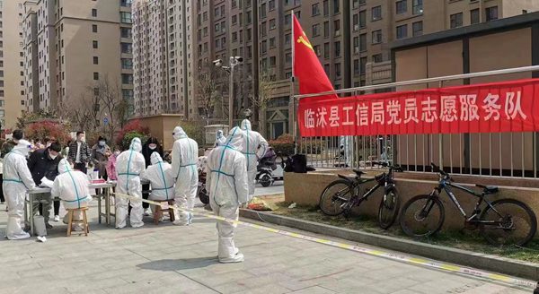 3月31日臨沭縣發(fā)現(xiàn)無癥狀感染者病例后,縣工信局聞令而動,迅速組織人員集結(jié)奔赴幫包網(wǎng)格小區(qū),當(dāng)日協(xié)助開展全員核酸檢測3550余人次,隨后又完成封控區(qū)上門核酸檢測、執(zhí)勤區(qū)域搭建、特殊群體人員排查、夜間值守等工作。 同時招募社區(qū)志愿者協(xié)助封控區(qū)居民每日運送生活物資、生活垃圾1000余份。在與疫情戰(zhàn)斗的十多天中,圓滿完成幫包小區(qū)管控區(qū)全員核酸檢測2.45萬人次,封控區(qū)全員核酸檢測3541人次,出入口24小時值守等各項工作任務(wù),筑牢疫情防控“銅墻鐵壁”。