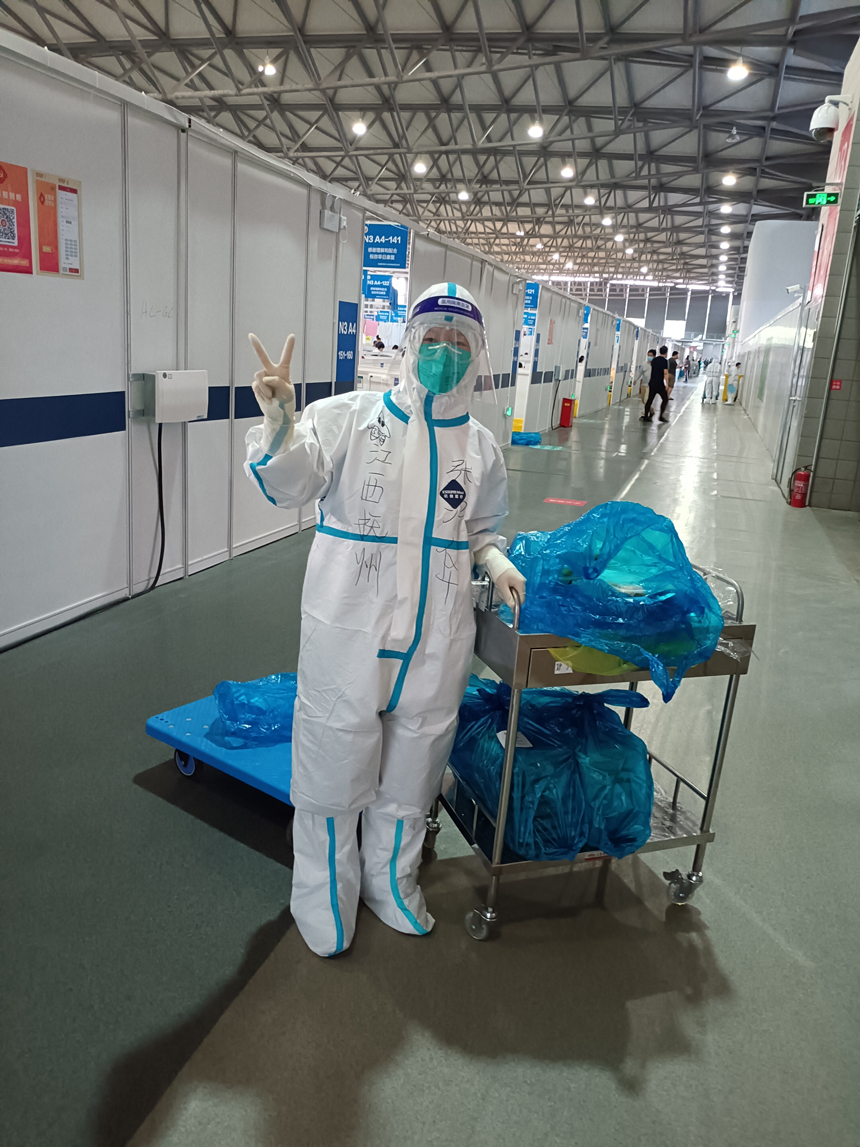 4月7日,張沖華隨隊(duì)正式進(jìn)駐上海新國(guó)際博覽中心方艙醫(yī)院N3艙,主要負(fù)責(zé)物資補(bǔ)發(fā)和護(hù)理,每天進(jìn)艙時(shí)間是4小時(shí),加上交接班時(shí)間,每天需要忙碌近八小時(shí)。